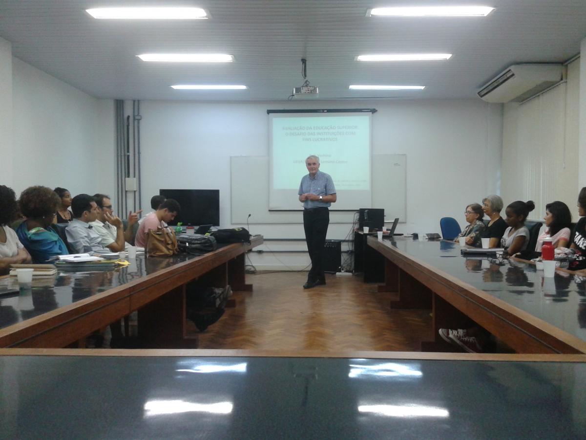 O seminário intitulado "Avaliação da Educação Superior: o Desafio das Instituições com Fins Lucrativos", foi apresentado na Faculdade de Economia da UFBA pelo professor Robert E. Verhine, membro do projeto OBEDUC, em 18 de agosto de 2016.